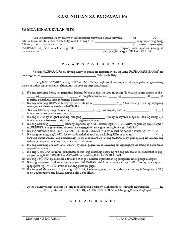 Kasunduan sa pagpapagawa ng bahay format / kasunduan sa pagpapaupa :